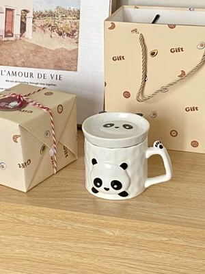 ★送料無料★セラミック パンダ 可愛いカップ コップ スプーンセット 陶磁 マグカップ 食器 オシャレ 韓国インテリア 韓国雑貨 収納